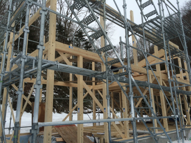 足場が組みあがり、