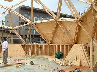1015 ドーム野地合板貼り