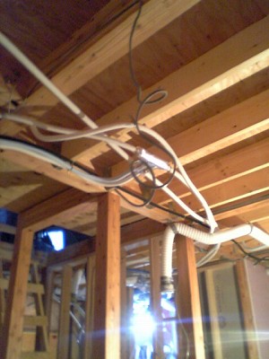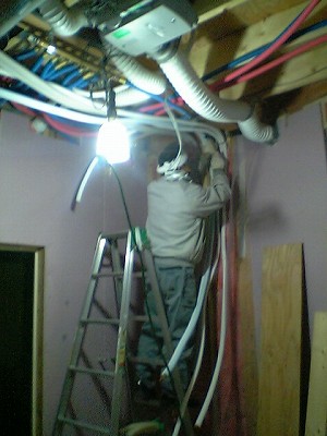 1階天井に暖房配管作業を行いました。