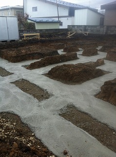 基礎の捨てコンクリートが昨日打設されました。