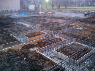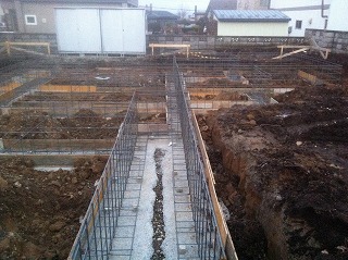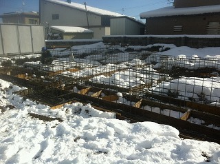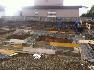 本日午後に捨てコンを打設し明日鉄筋の材料の搬入予定です。