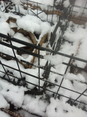 打設部分は雪をバーナー等を使用して溶かし水分を飛ばしています。