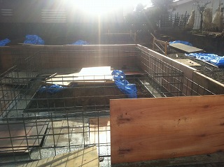 型枠の中に先日の雪で入ってしまった雪をとかしてなくしてしまってから打設
