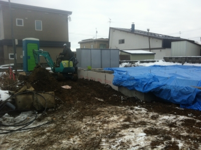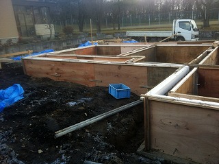 本日午後に捨てコンを打設し明日鉄筋の材料の搬入予定です。