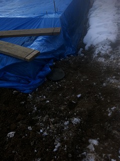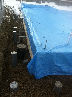 本日より埋戻し工事を行います。埋め戻し前配管作業完了後の様子です。