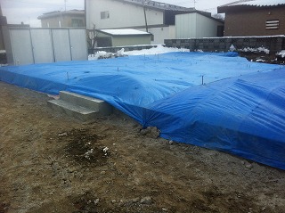 打設後はシートをかぶせ吹きさらしにしないことを確認しております。