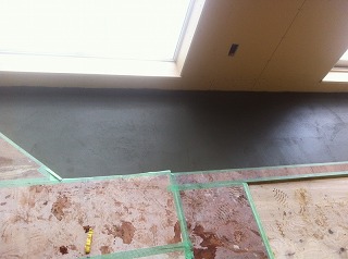 本日は朝より左官工事が入っていました。リビング部分と玄関部分の土間部分のモルタルです。