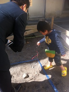 本日は施主であるT様一家と遣方確認を行いました。