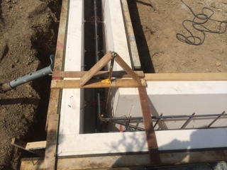 明日のコンクリート打設に備えてスリーブと鉄筋間隔を確認しました。