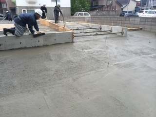 土間コンクリートの打設工事が終わりました。