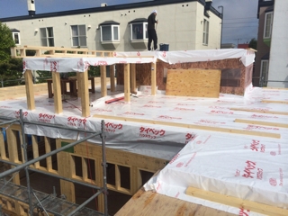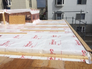 現在、断熱材施工中です。