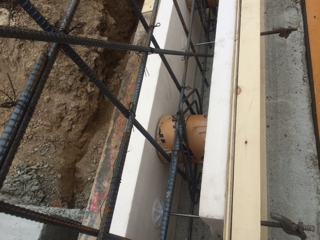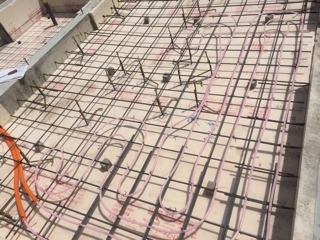 基礎の土間にパイプを入れて土間暖房の工事です。