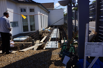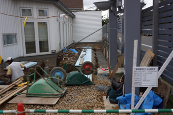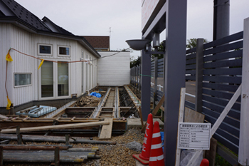 本日は重機が出入りできるよう、