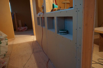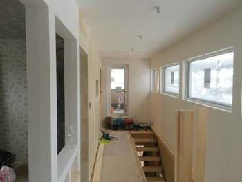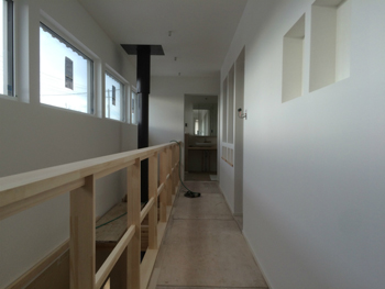 薪ストーブ、煙突も取り付けられ、大工さんによる造作手すりも出来上がっておりました。