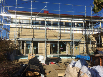 一部外壁を張っており、木部が良い色味で板金の色とも合っています。