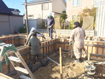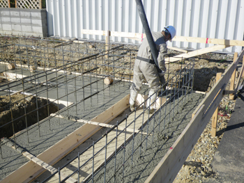 本日は基礎ベースコンクリートの打設を行いました。
