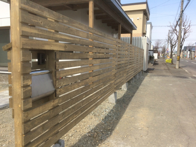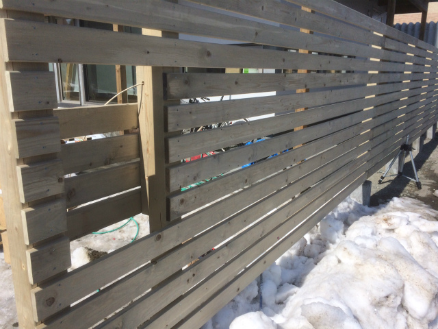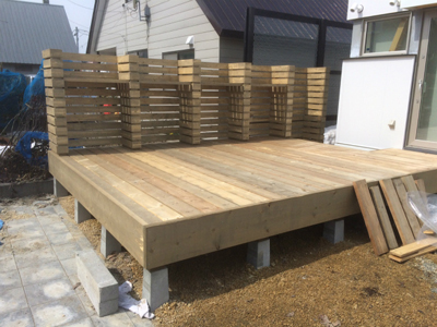 冬期中に行うことが出来なかったウッドデッキと木塀を製作しております。