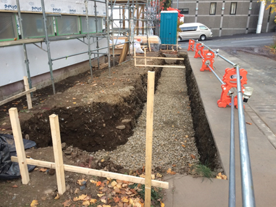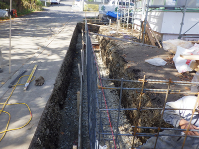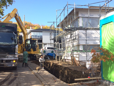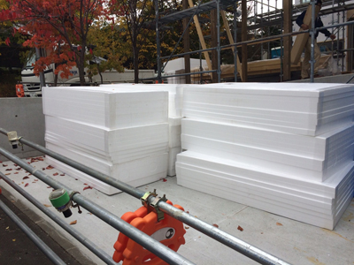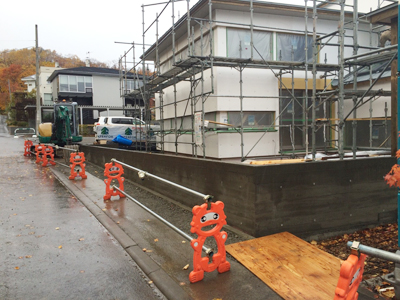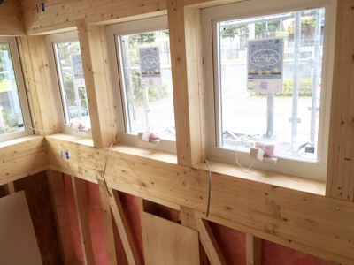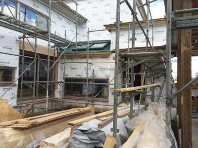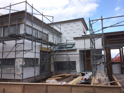 搬入状況、外壁の細かい納まりなどを確認しました。