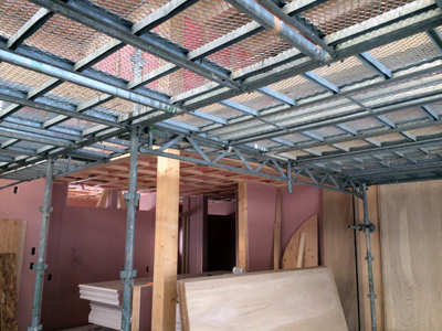 吹抜け部分に内部足場がかかりました。