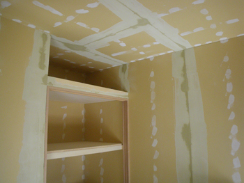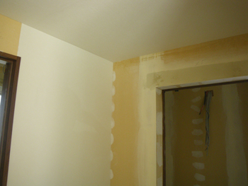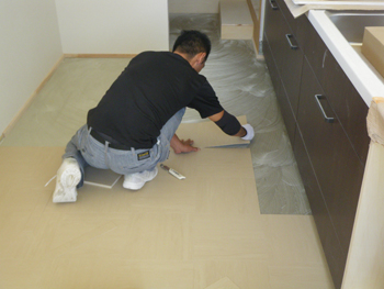 壁・天井下地パテ処理及びクロス貼り、床Pタイル貼りの施行状況です。