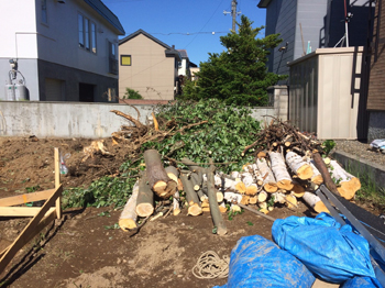また、明日既存樹木枝産廃の為枝の仕分け作業をしました。