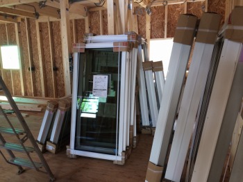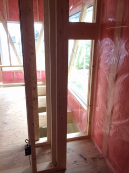 納品されたサッシの確認、制作棚、配線状況を確認しました。