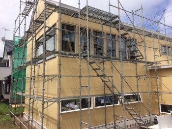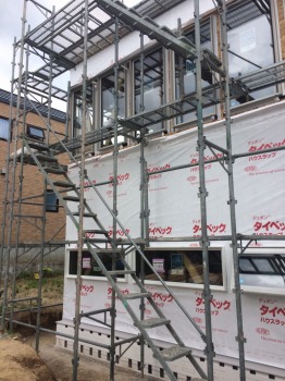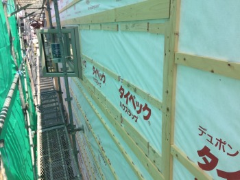 今日と明日で外部タイベック、サッシ取付の予定となっております。