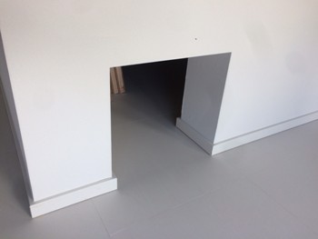 外構仕上げ・キャットウォークアクリル施工の様子です。