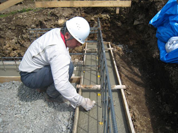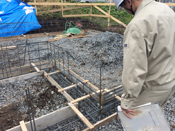 本日、基礎の配筋検査を行いました。