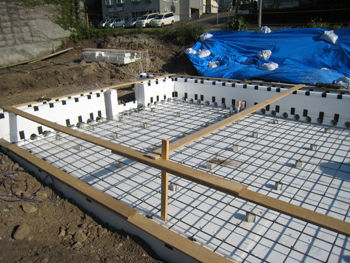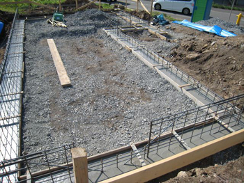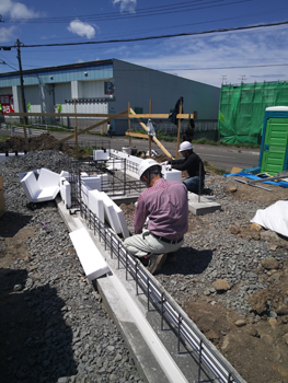 土間鉄筋敷きの施工状況です。