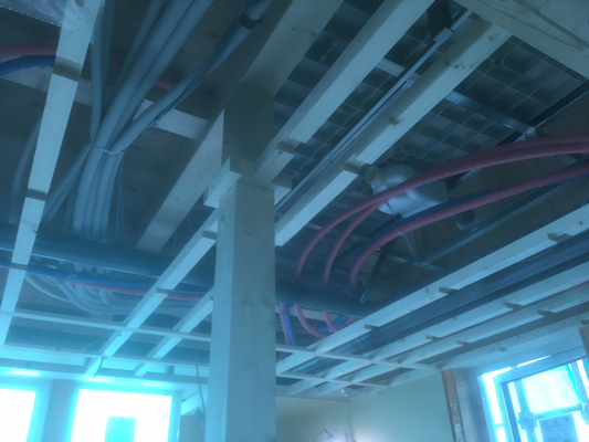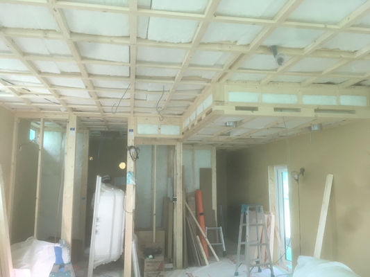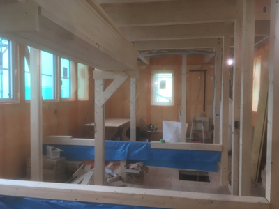 大工は天井下地が終わり、天井GW入れを行なっております。