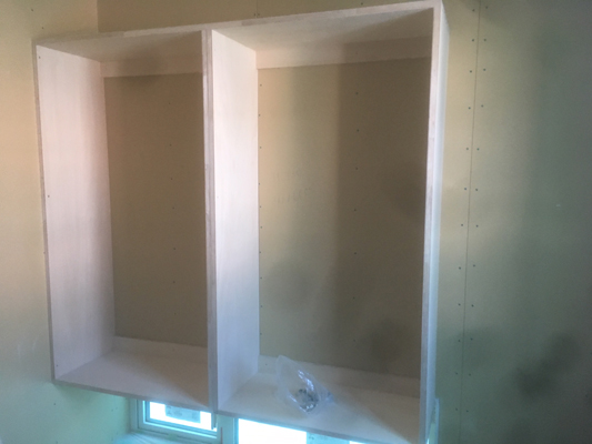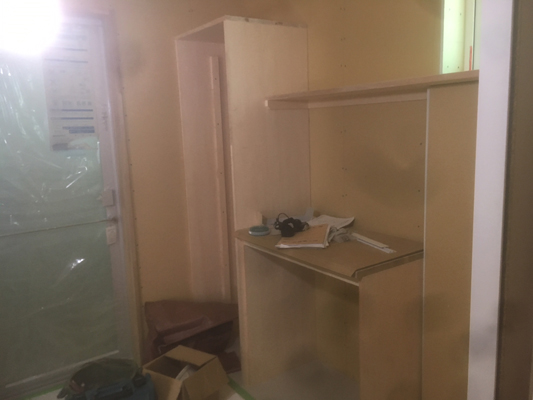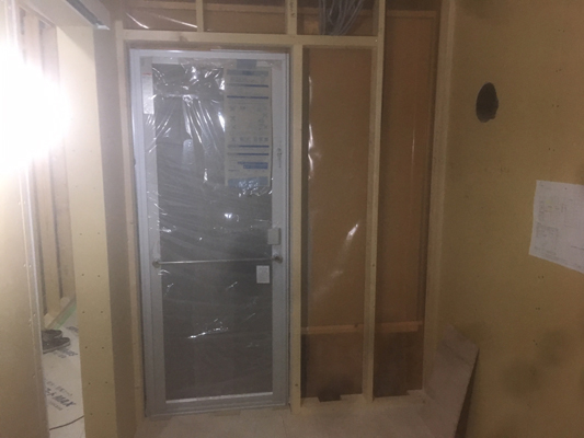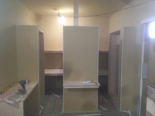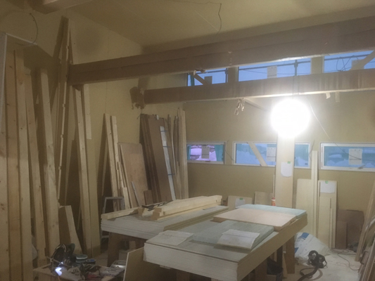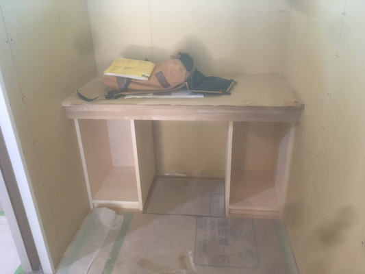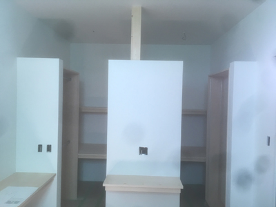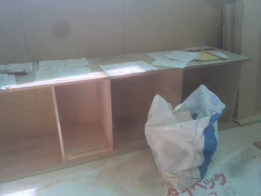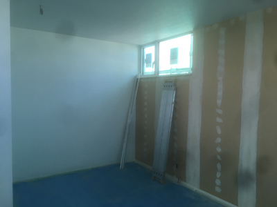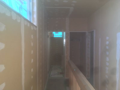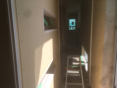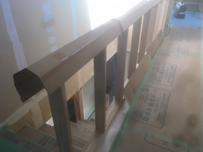 内部パテを行なっております。各所、電気ボード開口位置、造作納まりなど確認致しました。