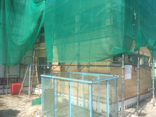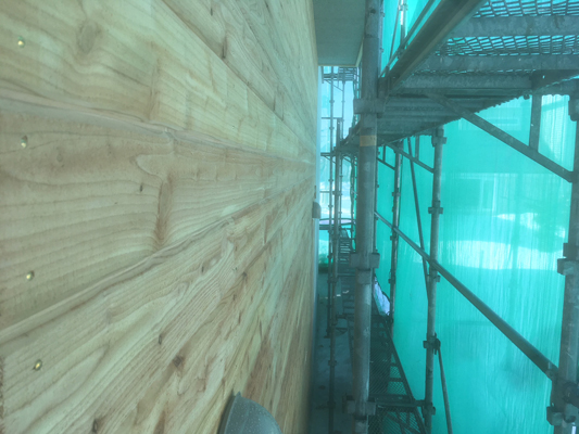木板貼、内部造作が進んでおります。外部納まり、造作納まり等確認致しました。