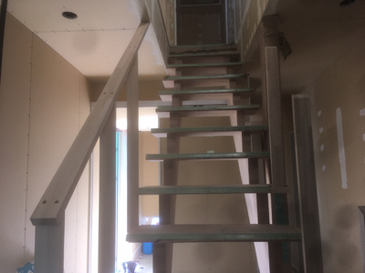 外壁が全て貼りおわり、大工内部造作も残り少しを残し完了致しました。