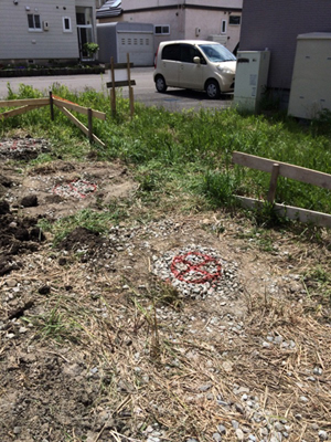 現地にて、A様にやり方確認いただき近隣挨拶を行いました。