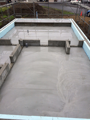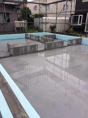 床下を常に掃除と排水をしながら床合板を半分だけ施工し