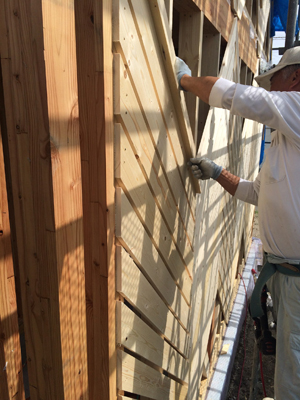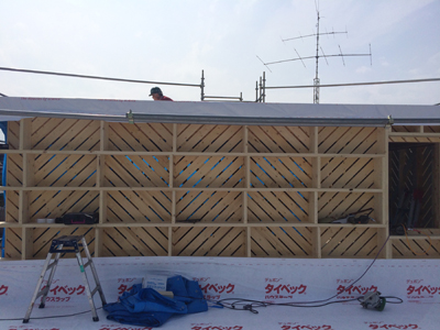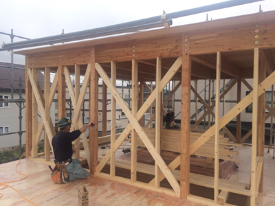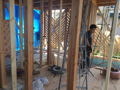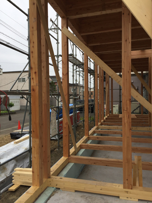 2、大工工事=斜め板貼り、筋交い取付(金物含む)