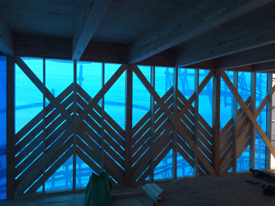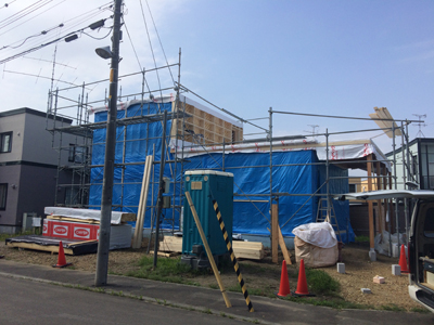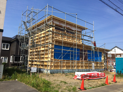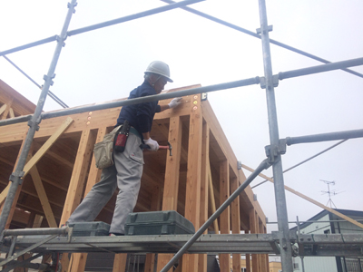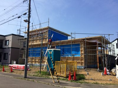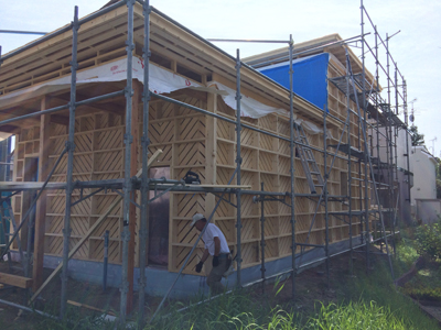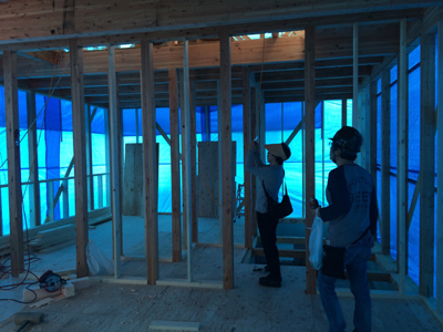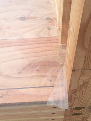 合板にはツーバイガードを貼って養生しながら工事を進めている事を確認しました。