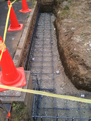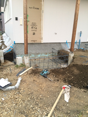 左官工事と玄関ポーチ部分の外構工事が行われております。