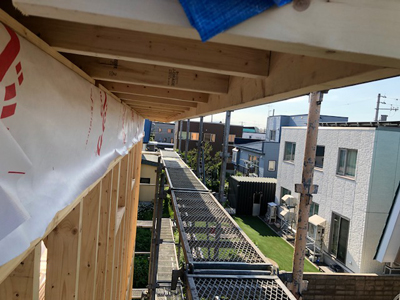 ルーフィング重ね幅、金物取り付け位置、ビスが適正か、など確認し、大工と納まり打ち合わせを行いました。