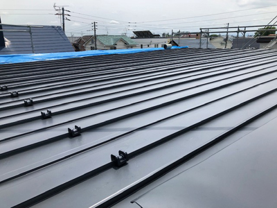 ルーフィング立ち上げ長さ、軒換気材の有無、屋根板金貼状況、雪止め部材の有無、現場状況など確認致しました。