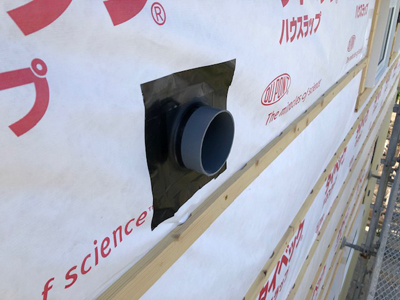 換気スリーブ施工完了し、外部の気密防水テープもきちんと施工されていることを確認致しました。