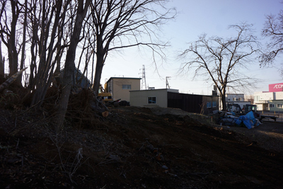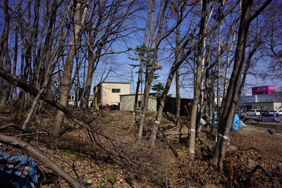 地盤調査を行い、樹木の伐採抜根が始まりました。