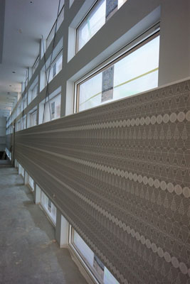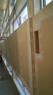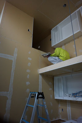 下地パテが終わりクロス貼りが始まります。