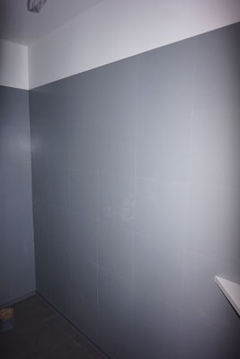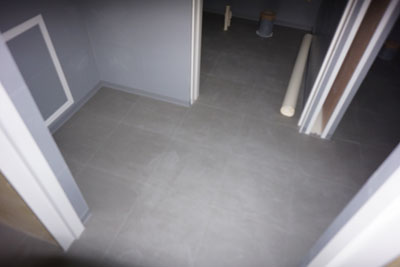 クロス工事が終わり床のタイル貼りが始まります。