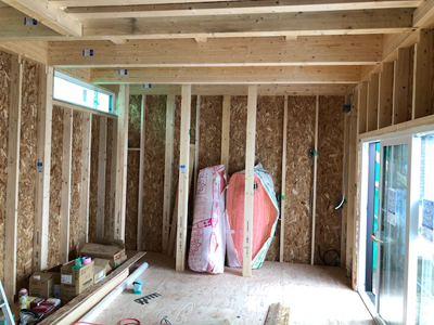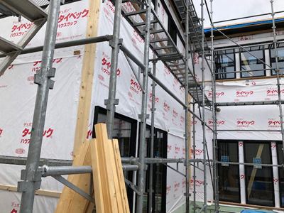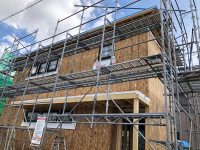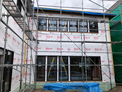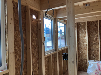 屋根施工やサッシ取り付けが完了しております。