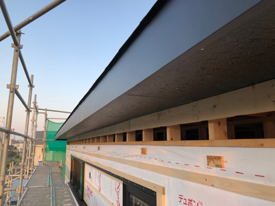 内部配線工事が完了し、外部防水工事行っております。