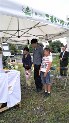 土地の神様にご挨拶し、安全に工事が進むようお祈りしました。