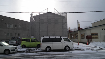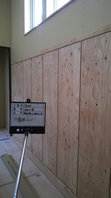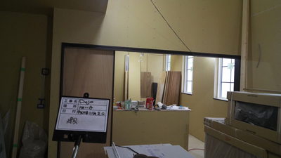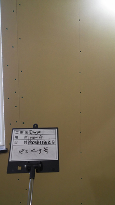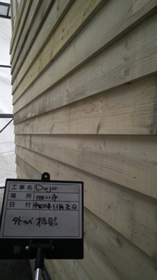 Dojoの木壁、内部建具、収納、階段と外壁等の施工状況を確認しました。