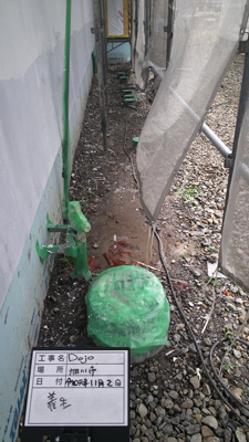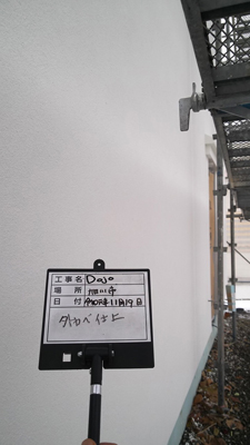 内部建具、収納、養生等と外壁の施工状況を確認し、現場でお施主様と打合せをいたしました。